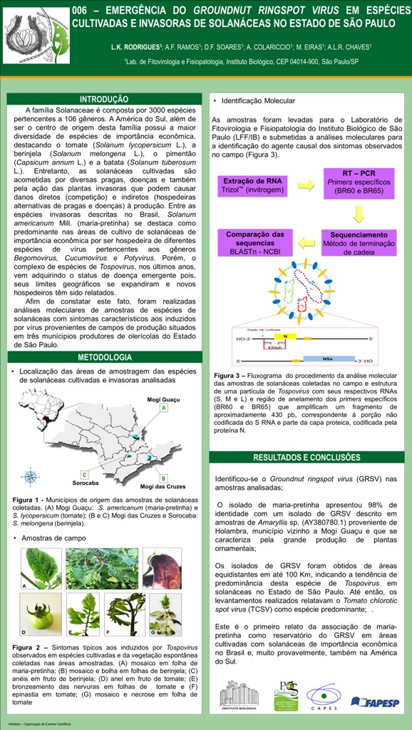 EMERGÊNCIA DO Groundnut ringspot virus EM ESPÉCIES CULTIVADAS E INVASORAS DE SOLANÁCEAS NO ESTADO DE SÃO PAULO