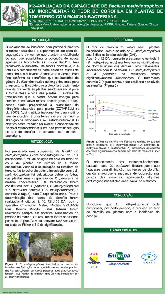 AVALIAÇÃO DA CAPACIDADE DE Bacillus methylotrophicus EM INCREMENTAR O TEOR DE CLOROFILA EM PLANTAS DE TOMATEIRO COM MANCHA-BACTERIANA