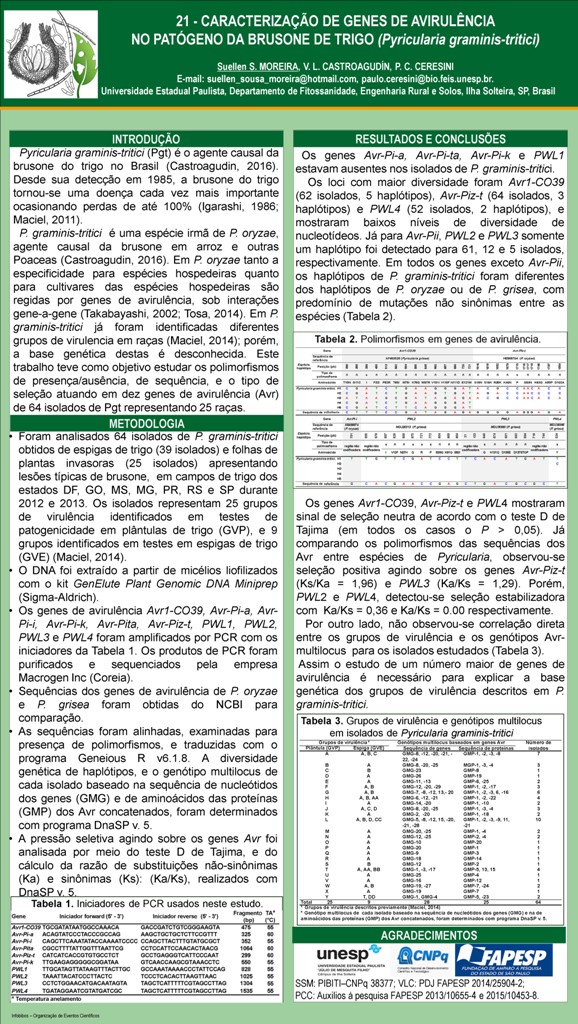 GENES DE AVIRULÊNCIA NO PATÓGENO DA BRUSONE DO TRIGO (Pyricularia graminis-tritici)