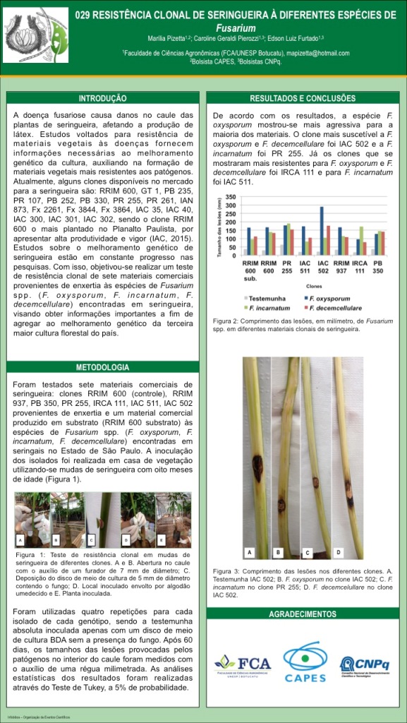 RESISTÊNCIA CLONAL DE SERINGUEIRA A DIFERENTES ESPÉCIES DE Fusarium