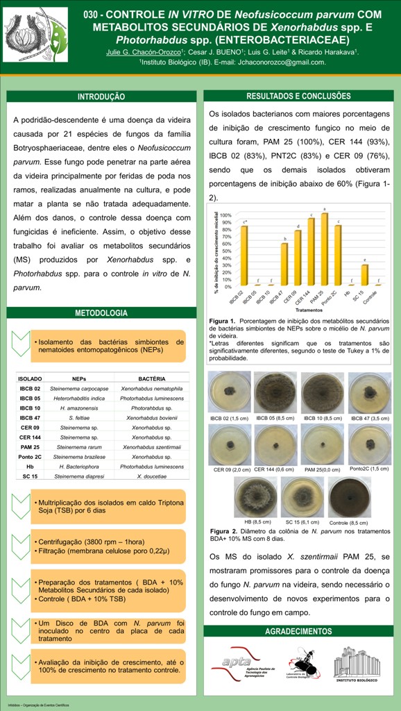 CONTROLE IN VITRO DE Neofusicoccum parvum COM METABOLITOS SECUNDÁRIOS DE Xenorhabdus spp. E Photorhabdus spp. (Enterobacteriaceae)