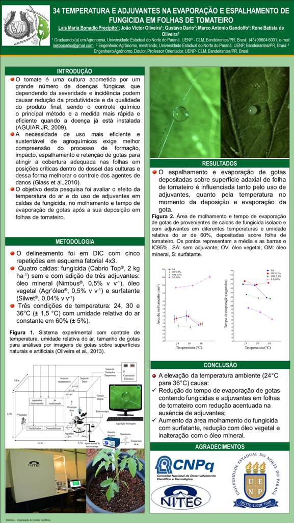 TEMPERATURA E ADJUVANTES NA EVAPORAÇÃO E ESPALHAMENTO DE FUNGICIDA EM FOLHAS DE TOMATEIRO