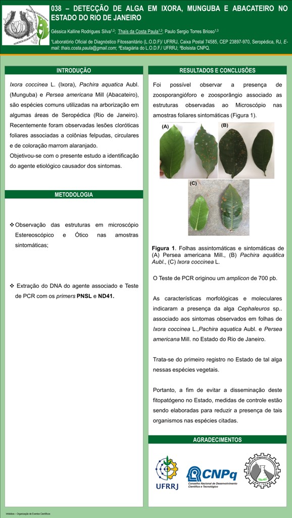 DETECÇÃO DE ALGA EM IXORA, MUNGUBA E ABACATEIRO NO ESTADO DO RIO DE JANEIRO