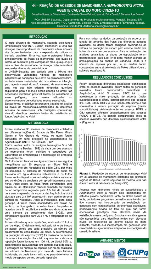 REAÇÃO DE ACESSOS DE MAMONEIRA A Amphobotrys ricini, AGENTE CAUSAL DO MOFO CINZENTO
