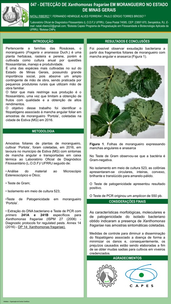 DETECÇÃO DE Xanthomonas fragariae EM MORANGUEIRO NO ESTADO DE MINAS GERAIS