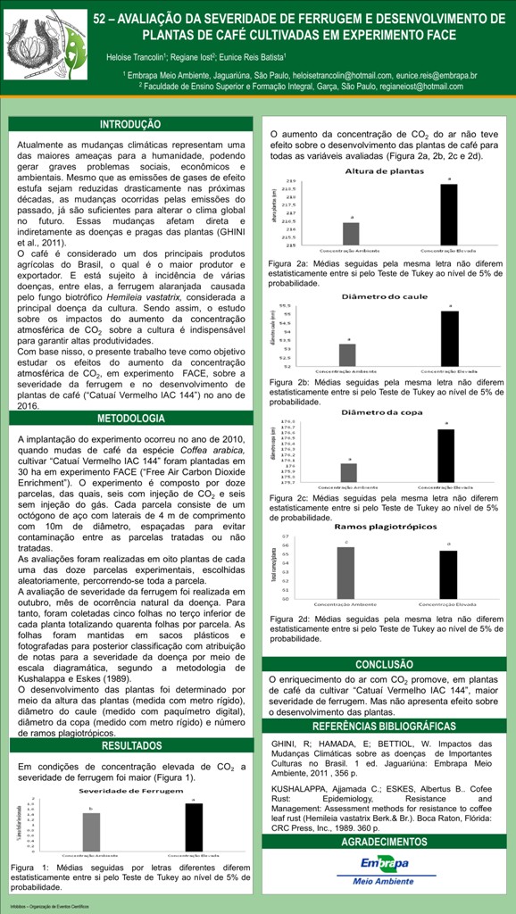 AVALIAÇÃO DA SEVERIDADE DE FERRUGEM E DESENVOLVIMENTO DE PLANTAS DE CAFÉ CULTIVADAS EM EXPERIMENTO FACE (“FREE AIR CARBON DIOXIDE ENRICHMENT”)