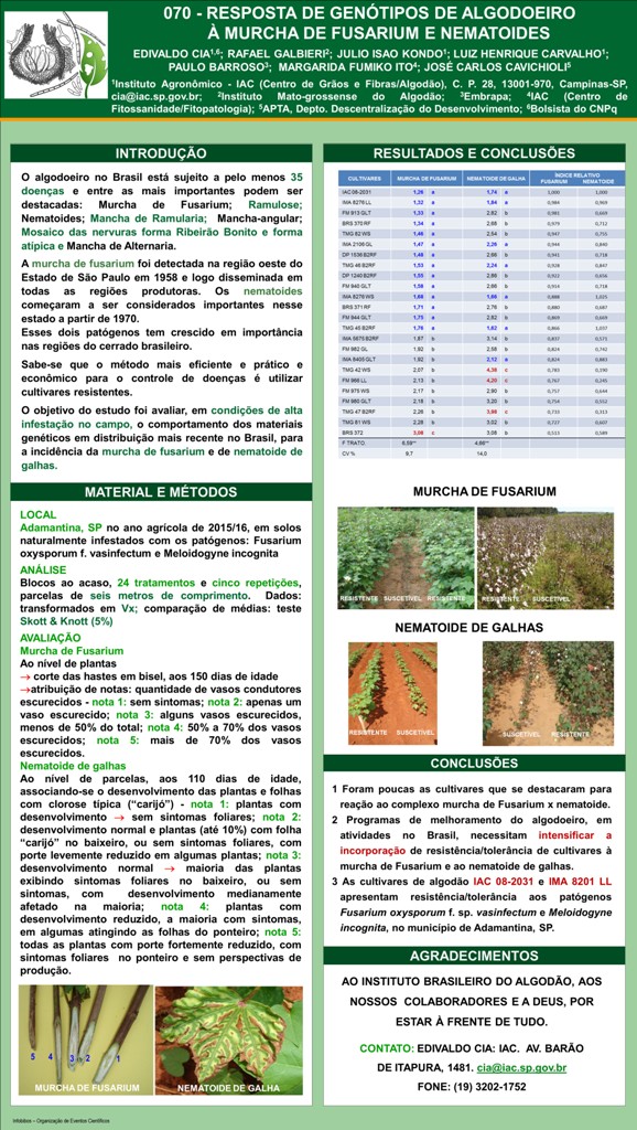 RESPOSTA DE GENÓTIPOS DE ALGODOEIRO À MURCHA DE FUSARIUM E NEMATOIDE DE GALHA
