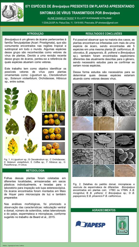 ESPÉCIES DE Brevipalpus PRESENTES EM PLANTAS APRESENTANDO SINTOMAS DE VÍRUS TRANSMITIDOS POR Brevipalpus