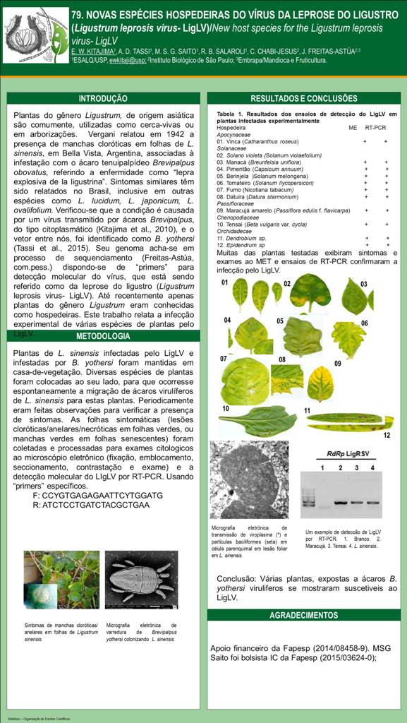 NOVAS ESPÉCIES HOSPEDEIRAS DO VÍRUS DA LEPROSE DO LIGUSTRO (Ligustrum leprosis virus- LigLV)