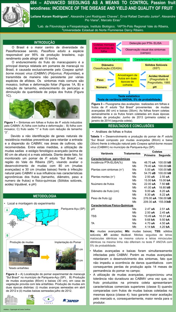 ADVANCED SEEDLINGS AS A MEANS TO CONTROL PASSION FRUIT WOODINESS: INCIDENCE OF THE DISEASE AND YIELD AND QUALITY OF FRUIT
