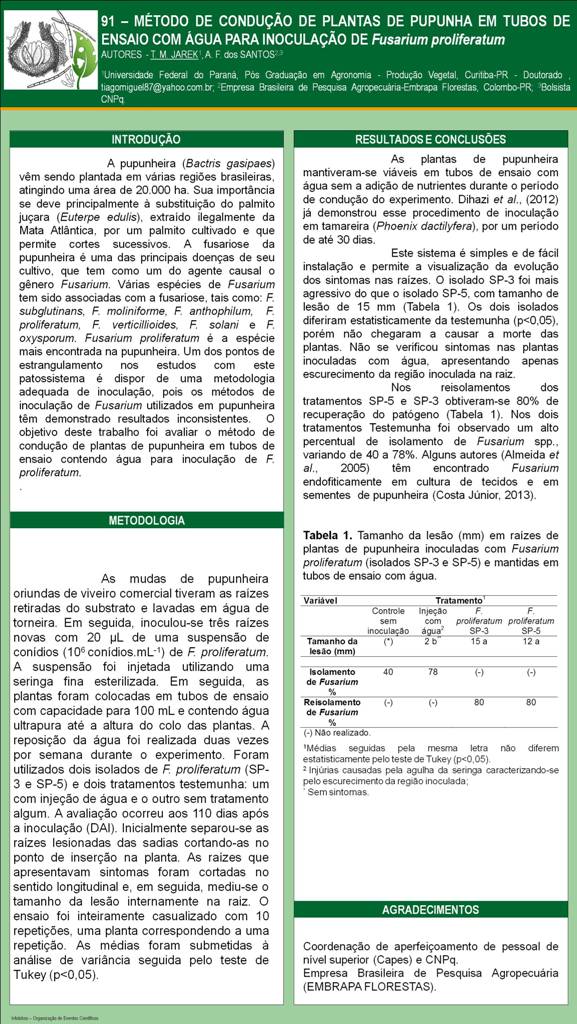 MÉTODO DE CONDUÇÃO DE PLANTAS DE PUPUNHA EM TUBOS DE ENSAIO COM ÁGUA PARA INOCULAÇÃO DE Fusarium proliferatum