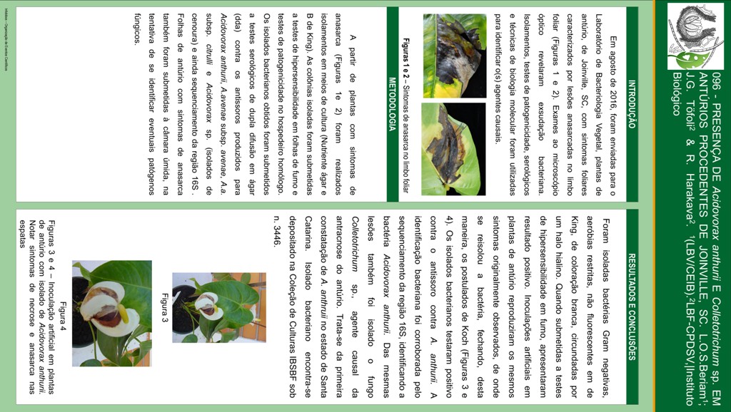 PRESENÇA DE Acidovorax anthurii E Colletotrichum sp. EM ANTÚRIO PROCEDENTES DE JOINVILLE, SC