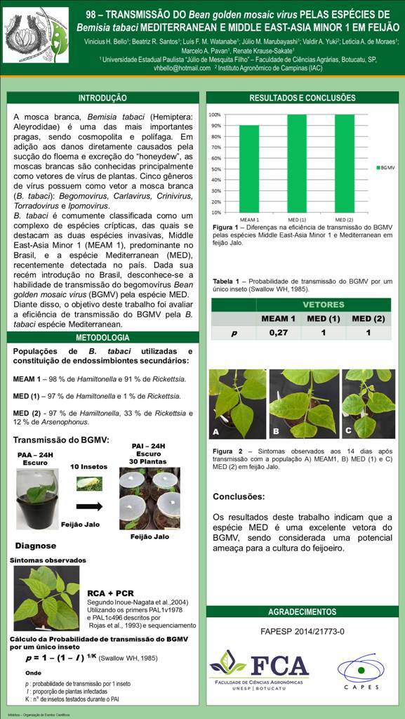 TRANSMISSÃO DO Bean golden mosaic virus PELAS ESPÉCIES DE Bemisia tabaci Mediterranean E Middle East-Asia Minor 1 EM FEIJÃO