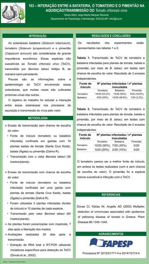 INTERAÇÃO ENTRE A BATATEIRA, O TOMATEIRO E O PIMENTÃO NA AQUISIÇÃO/TRANSMISSÃO DO Tomato chlorosis virus