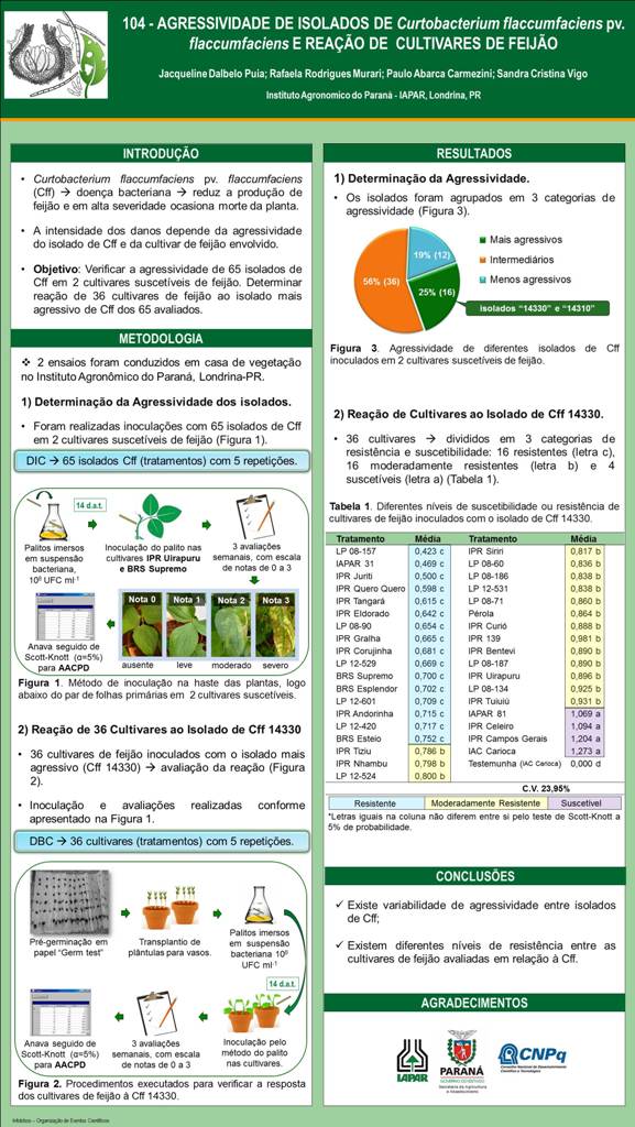 AGRESSIVIDADE DE ISOLADOS DE Curtobacterium flaccumfaciens pv. flaccumfaciens E REAÇÃO DE CULTIVARES DE FEIJÃO