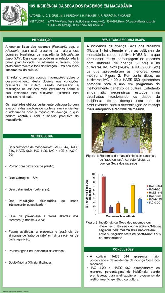 INCIDÊNCIA DA SECA DOS RACEMOS EM CULTIVARES DE MACADAMIA
