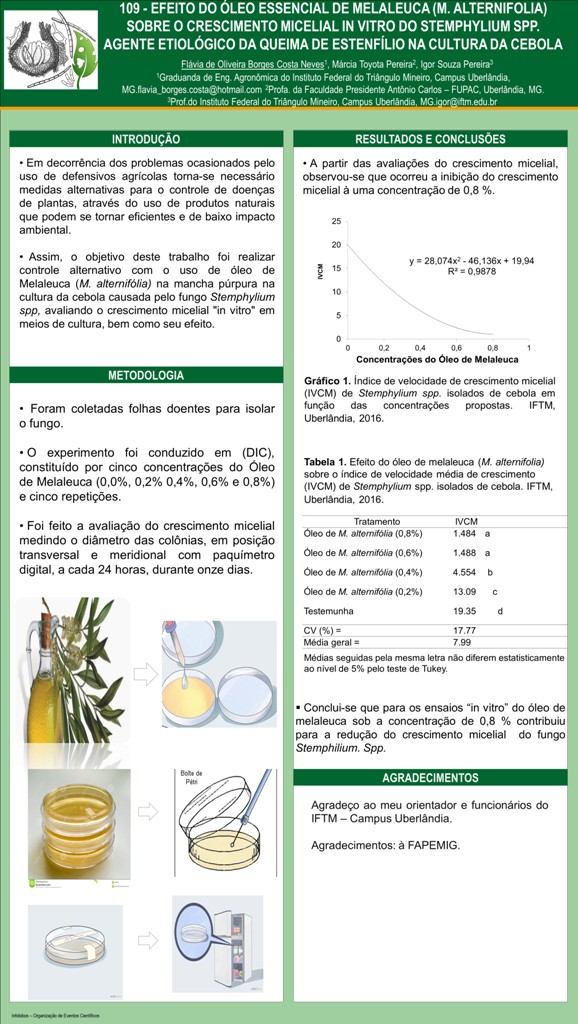 EFEITO DO ÓLEO ESSENCIAL DE MELALEUCA SOBRE O CRESCIMENTO MICELIAL DO Stemphylium sp., AGENTE ETIOLÓGICO DA QUEIMA-DEESTENFÍLIO NA CULTURA DA CEBOLA
