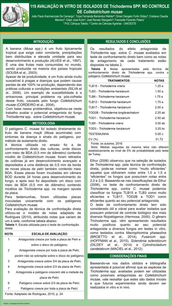 AVALIAÇÃO IN VITRO DE ISOLADOS DE Trichoderma SPP. NO CONTROLE DE Colletotrichum musae