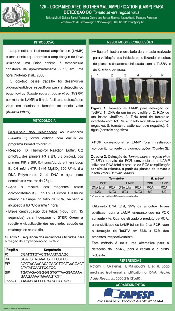 LOOP-MEDIATED ISOTHERMAL AMPLIFICATION (LAMP) PARA DETECÇÃO DO Tomato severe rugose virus