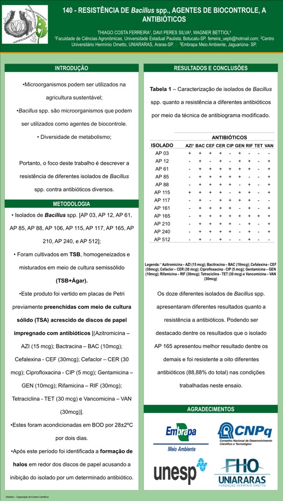 RESISTÊNCIA DE DIFERENTES CEPAS DE Bacillus spp. A ANTIBIÓTICOS