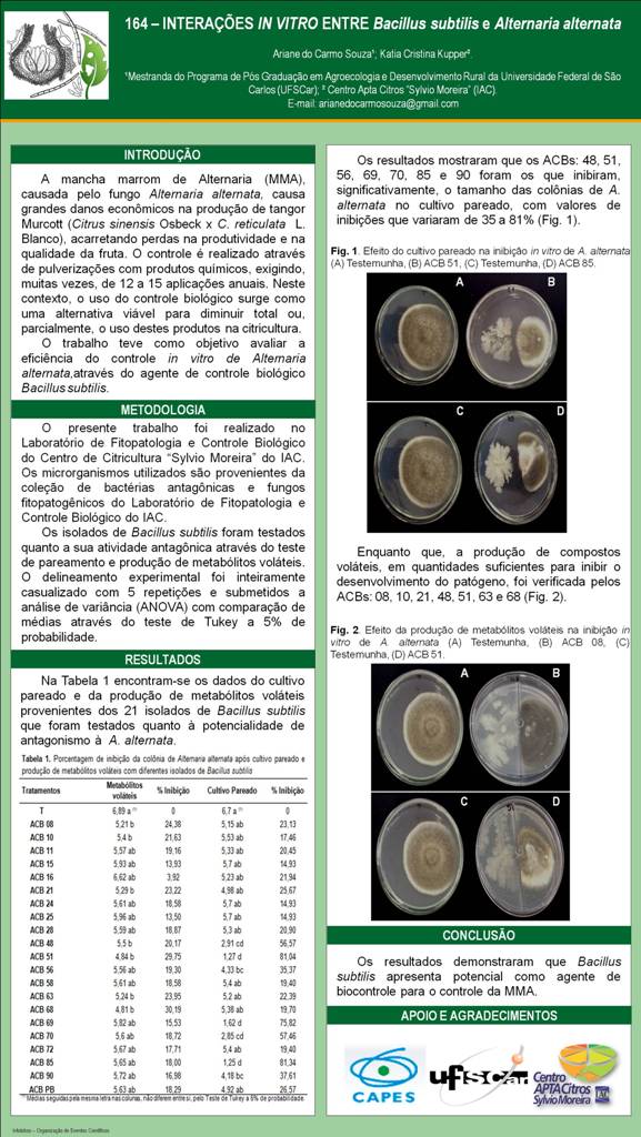 INTERAÇÕES IN VITRO ENTRE Bacillus subtilis E Alternaria alternata