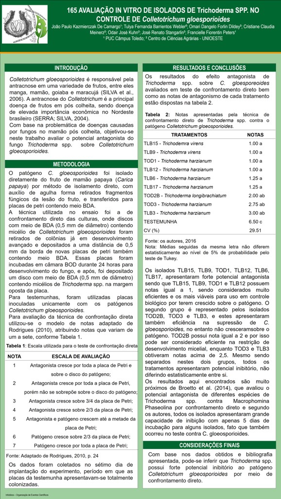 AVALIAÇÃO IN VITRO DE ISOLADOS DE Trichoderma spp. NO CONTROLE DE Colletotrichum gloesporioides