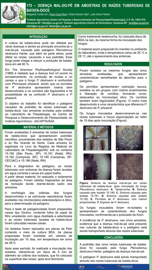 DOENÇA MAL-DO-PÉ EM AMOSTRAS DE RAÍZES TUBEROSAS DE BATATA-DOCE