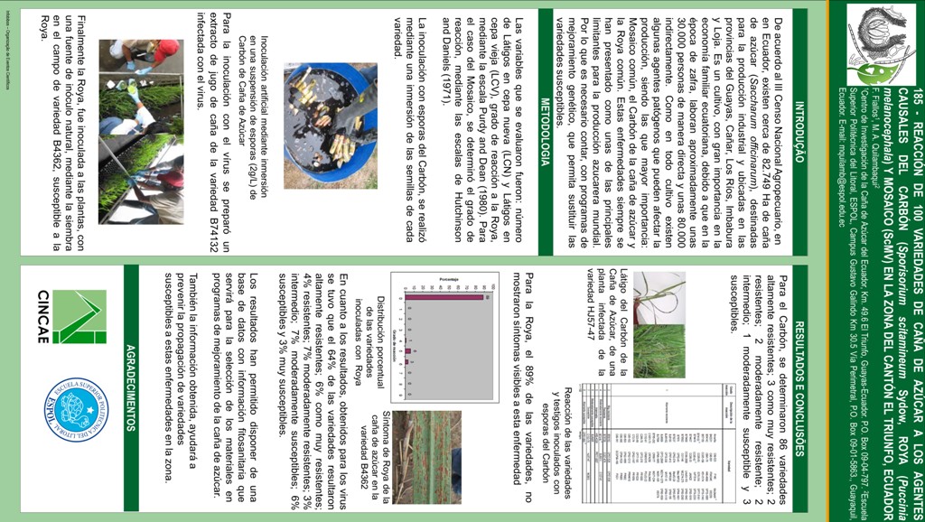 REACCIÓN DE 100 VARIEDADES DE CAÑA DE AZÚCAR A LOS AGENTES CAUSALES DEL CARBÓN (Sporisorium scitamineum Sydow, ROYA (Puccinia melanocephala) Y MOSAICO (ScMV) EN LA ZONA DEL CANTÓN EL TRIUNFO, ECUADOR