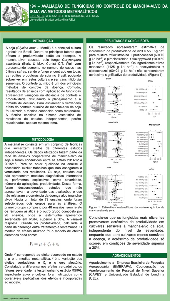 AVALIAÇÃO DE FUNGICIDAS NO CONTROLE DE MANCHA-ALVO DA SOJA, VIA MÉTODOS METANALÍTICOS