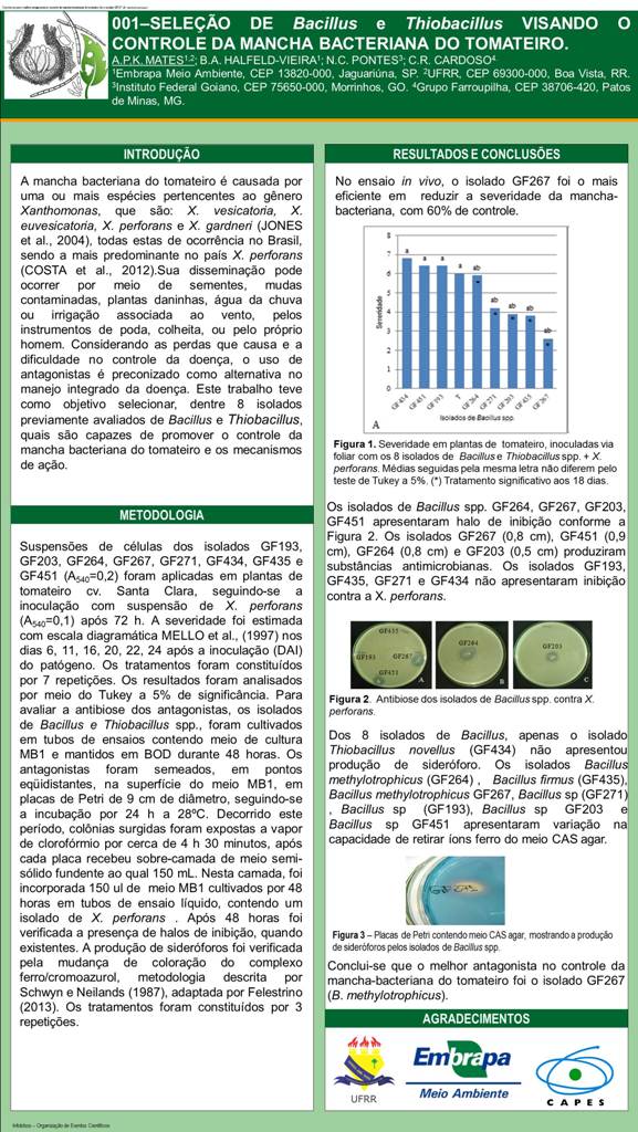 SELEÇÃO DE Bacillus e Thiobacillus VISANDO O CONTROLE DA MANCHA BACTERIANA DO TOMATEIRO