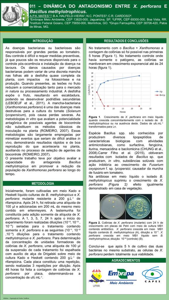 DINÂMICA DO ANTAGONISMO ENTRE X. perforans E Bacillus methylotrophicus