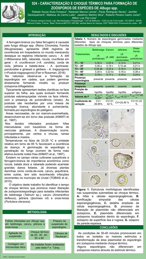 CARACTERIZAÇÃO E CHOQUE TÉRMICO PARA FORMAÇÃO DE ZOÓSPOROS DE ESPÉCIES DE Albugo spp.