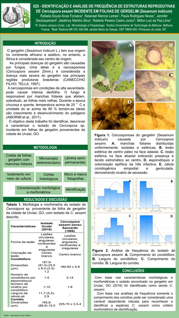IDENTIFICAÇÃO E ANÁLISE DE FREQUÊNCIA DE ESTRUTURAS REPRODUTIVAS DE Cercospora sesami INCIDENTE EM FOLHAS DE GERGELIM (Sesamum indicum)
