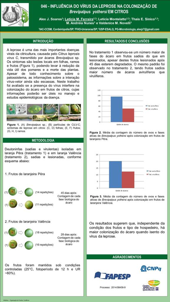 INFLUÊNCIA DO VÍRUS DA LEPROSE NA COLONIZAÇÃO DE Brevipalpus yothersi EM CITROS