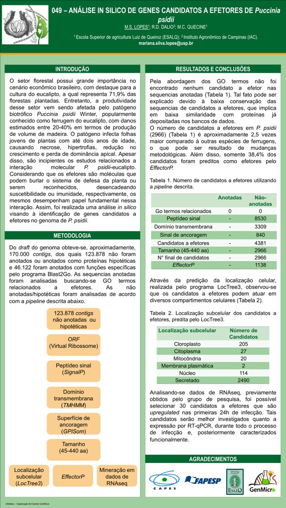 ANÁLISE IN SILICO DE GENES CANDIDATOS A EFETORES DE Puccinia psidii