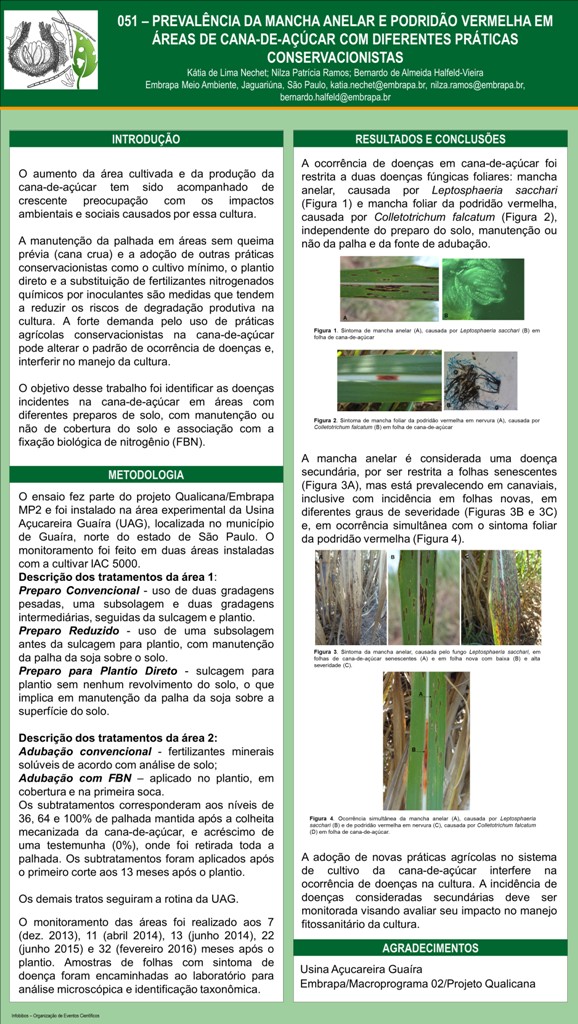 PREVALÊNCIA DA MANCHA ANELAR E PODRIDÃO VERMELHA EM ÁREAS DE CANA-DE-AÇÚCAR COM DIFERENTES PRÁTICAS CONSERVACIONISTAS