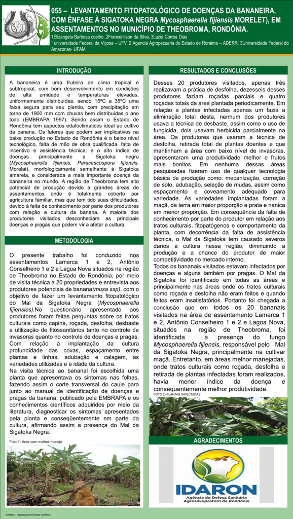 LEVANTAMENTO FITOPATOLÓGICO DE DOENÇAS DA BANANEIRA, COM ÊNFASE À SIGATOKA Negra Mycosphaerella fijiensis, morelet), EM ASSENTAMENTOS NO MUNICÍPIO DE THEOBROMA, RONDÔNIA