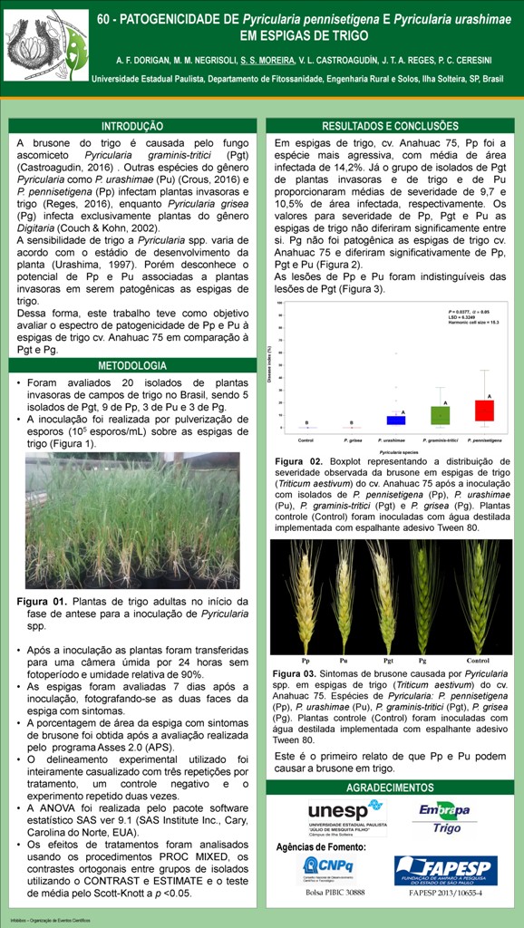 PATOGENICIDADE DE Pyricularia pennisetigena E Pyricularia urashimae EM ESPIGAS DE TRIGO