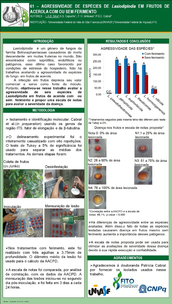 AGRESSIVIDADE DE ESPÉCIES DE Lasiodiplodia EM FRUTOS DE ACEROLA COM OU SEM FERIMENTO