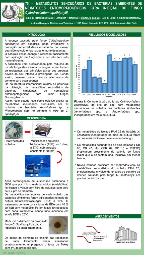 METABÓLITOS SENCUDÁRIOS DE BACTÉRIAS SIMBIONTES DE NEMATÓIDES ENTOMOPATOGÊNICOS PARA INIBIÇÃO DO FUNGO Cylindrocladium spathiphylli