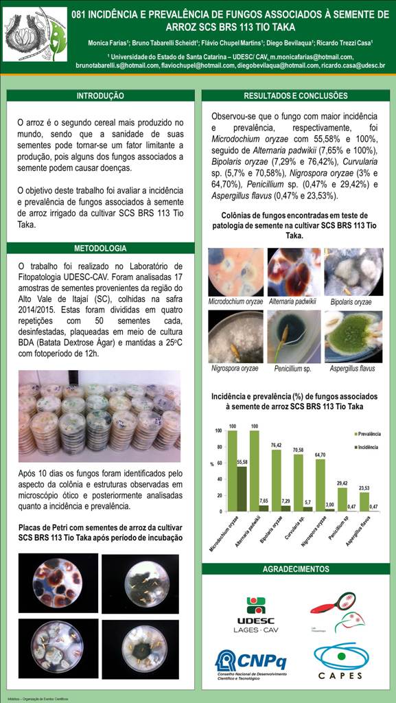INCIDÊNCIA E PREVALÊNCIA DE FUNGOS ASSOCIADOS À SEMENTE DE ARROZ SCS BRS 113 TIO TAKA