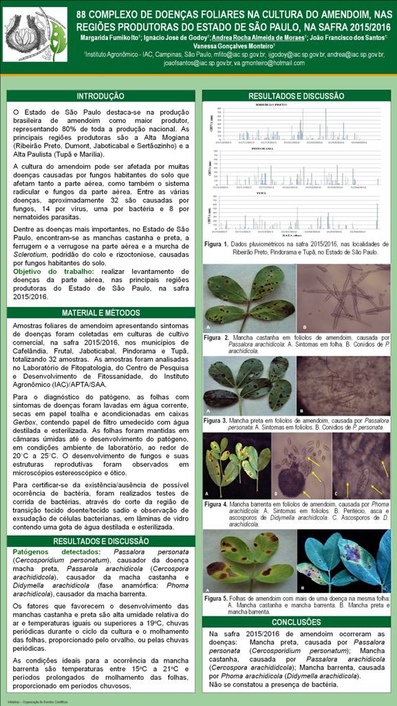 COMPLEXO DE DOENÇAS FOLIARES NA CULTURA DO AMENDOIM, NAS REGIÕES PRODUTORAS DO ESTADO DE SÃO PAULO, NA SAFRA 2015/2016