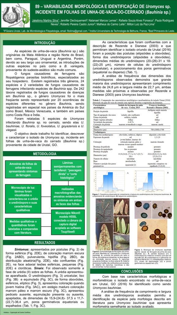 VARIABILIDADE MORFOLÓGICA E IDENTIFICAÇÃO DE Uromyces sp. INCIDENTE EM FOLHAS DE UNHA-DE-VACA-DO-CERRADO