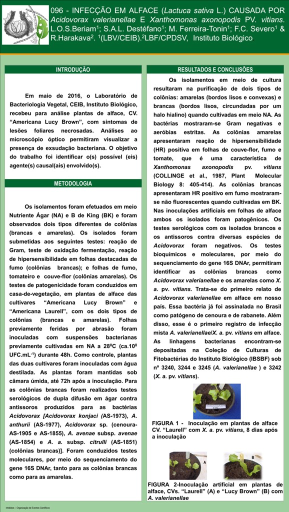 INFECÇÃO EM ALFACE (Lactuca sativa L.) CAUSADA POR Acidovorax valerianellae E Xanthomonas axonopodis PV. vitians