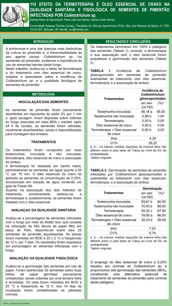 EFEITO DA TERMOTERAPIA E ÓLEO ESSENCIAL DE CRAVO NA QUALIDADE SANITÁRIA E FISIOLÓGICA DE SEMENTES DE PIMENTÃO INFECTADAS POR Colletotrichum sp.