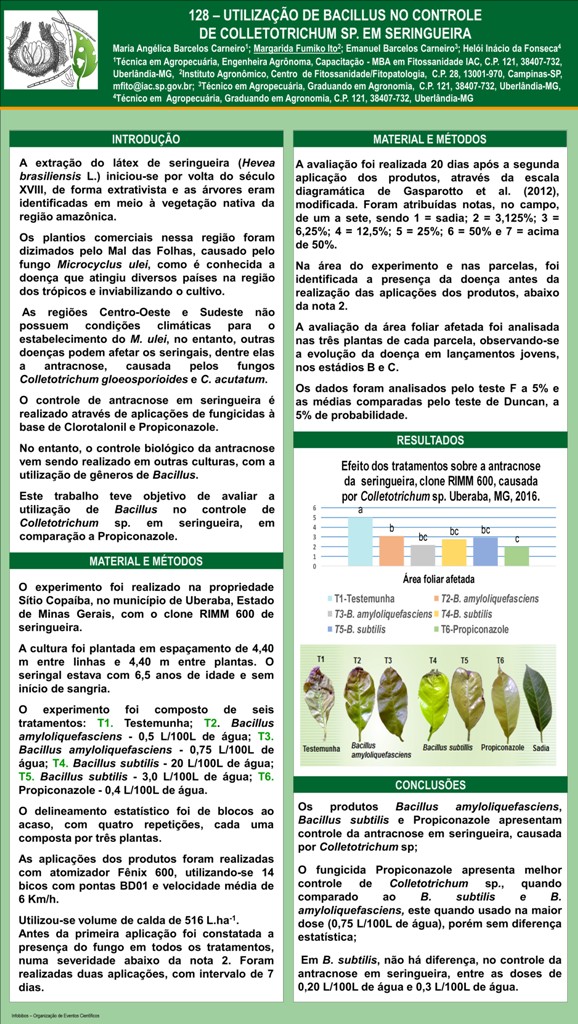UTILIZAÇÃO DE Bacillus NO CONTROLE DE Colletotrichum sp. EM SERINGUEIRA