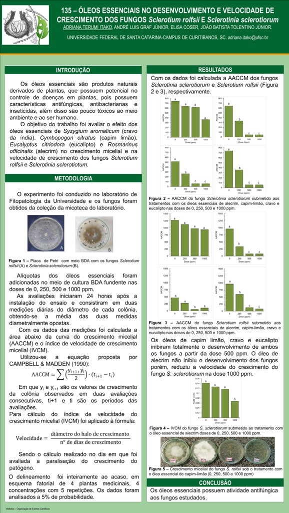 ÓLEOS ESSENCIAIS NO DESENVOLVIMENTO E VELOCIDADE DE CRESCIMENTO DOS FUNGOS Sclerotium rolfsii E Sclerotinia sclerotiorum