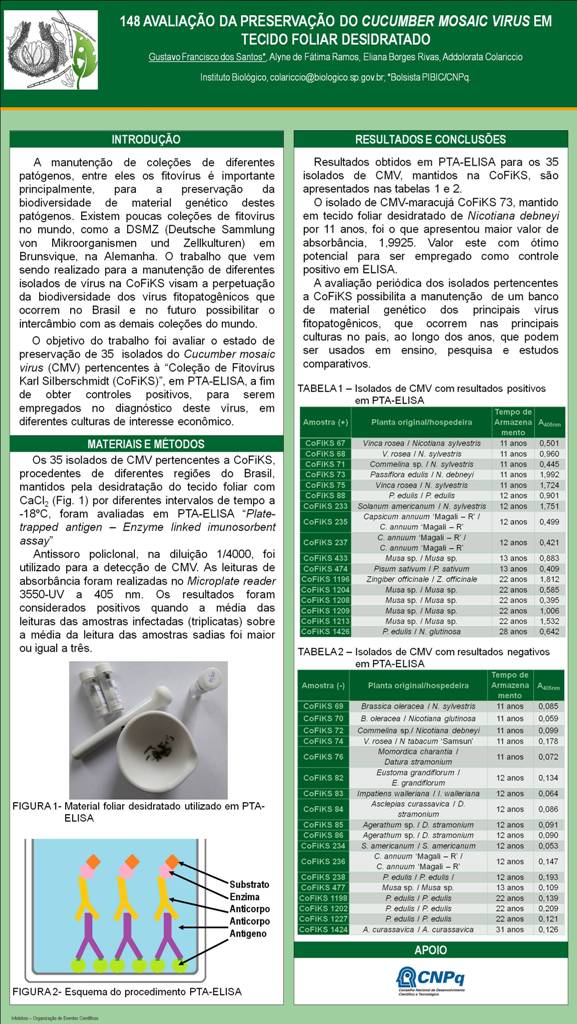 AVALIAÇÃO DA PRESERVAÇÃO DO Cucumber mosaic virus EM TECIDO FOLIAR DESIDRATADO