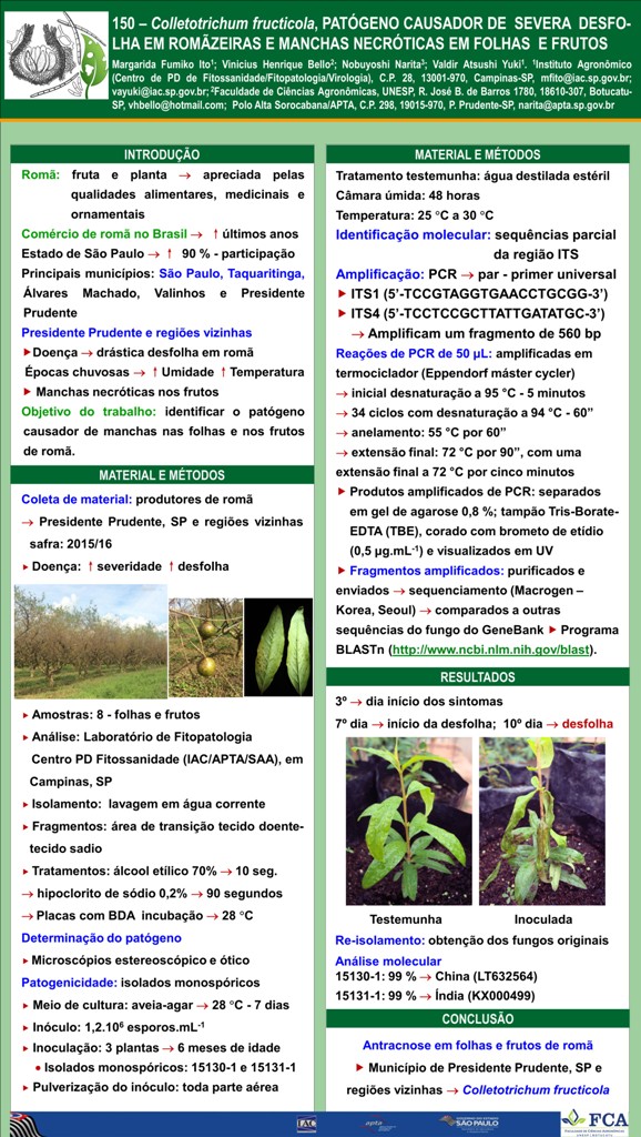 Colletotrichum fructicola, PATÓGENO CAUSADOR DE SEVERA DESFOLHA EM ROMÃZEIRAS E MANCHAS NECRÓTICAS EM FOLHAS E FRUTOS