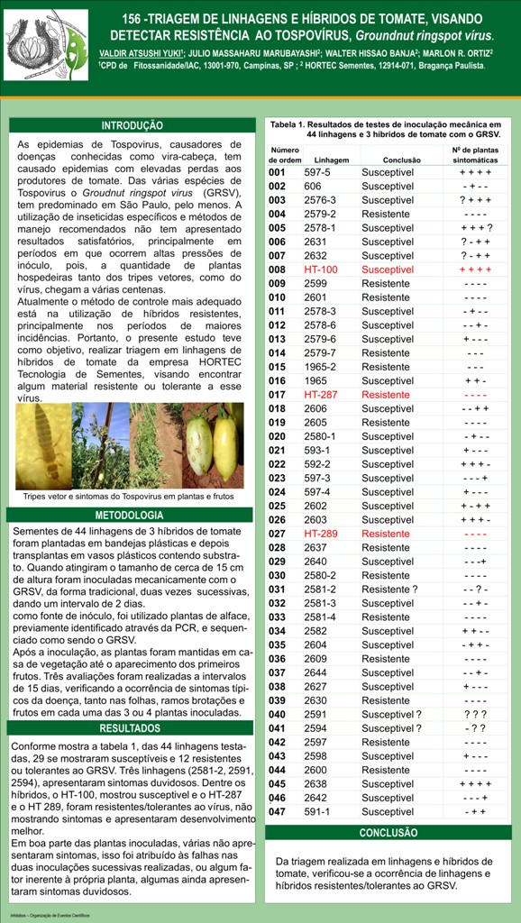 TRIAGEM DE LINHAGENS E HÍBRIDOS DE TOMATE, VISANDO DETECTAR RESISTÊNCIA AO TOSPOVÍRUS, Groundnut ringspot vírus